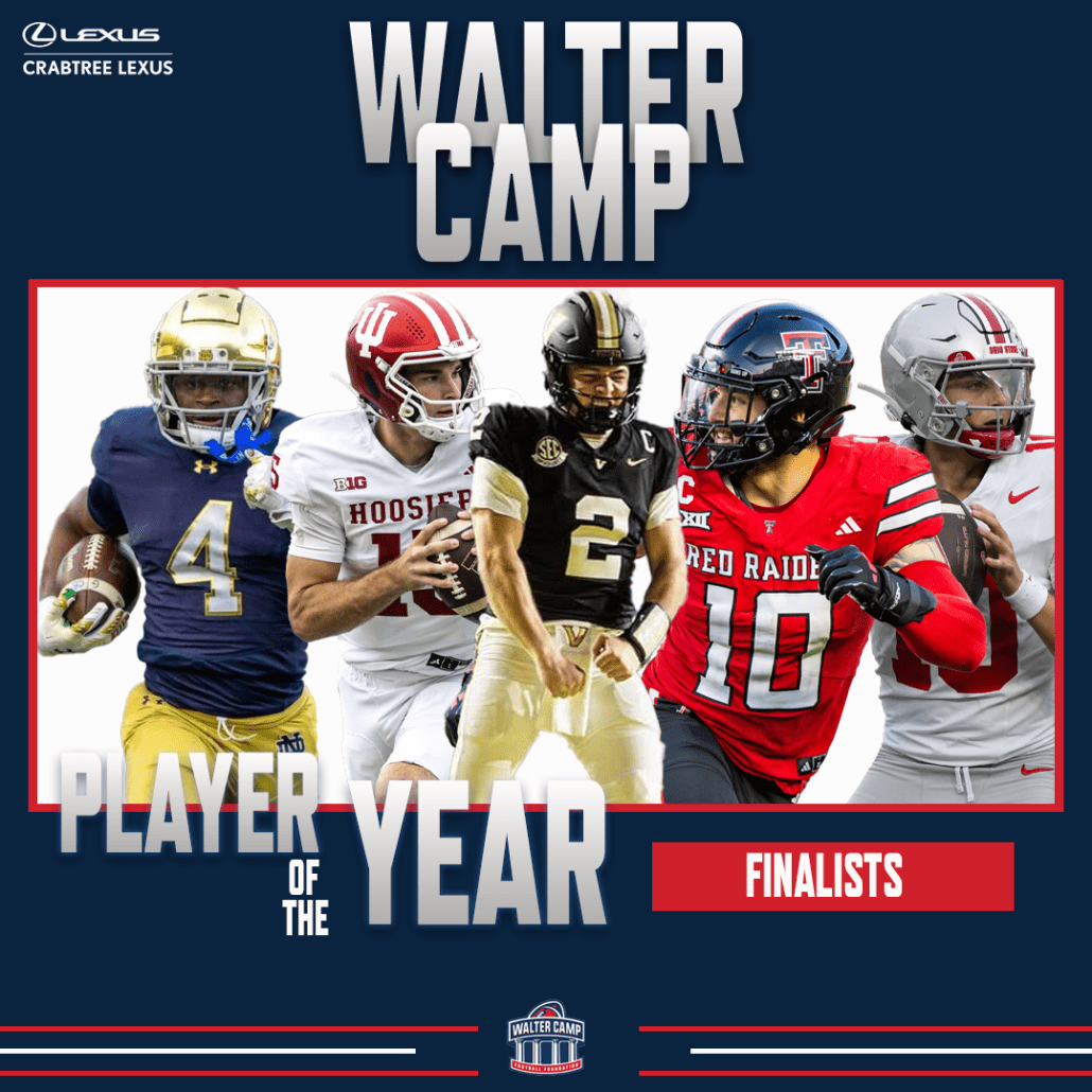 The Walter Camp Football Foundation has announced the five finalists for its 2025 Football Bowl Subdivision Player of the Year award, the fourth-oldest college football award in the nation.  The Walter Camp Player of the Year award is presented by Crabtree Lexus of New Haven.