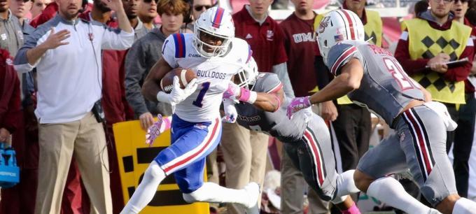 Carlos Henderson had 12 catches for 326 yards and five touchdowns as Louisiana Tech defeated Massachusetts, 56-28. The 326 receiving yards were the second-most in school history. Henderson had scoring receptions of 50, 42, 5, 83 and 6 yards as the Bulldogs improved to 4-3.