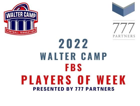 The Walter Camp Football Foundation has announced the Football Bowl Subdivision National Offensive and Defensive Players of the Week, presented by 777 Partners, for games ending October 22.