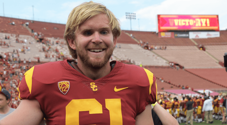 Jake Olson, a senior long snapper for the USC Trojans, is the recipient of the Walter Camp Football Foundation “Award of Perseverance.”