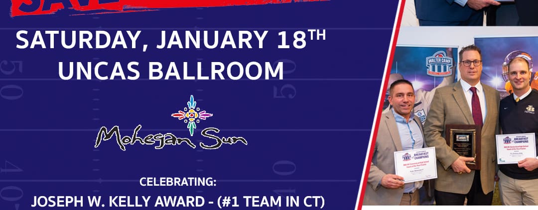 Walter Camp’s High School Breakfast of Champions will be held on January 18, and at a new location (Mohegan Sun Casino in Uncasville).