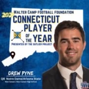 New Canaan’s Drew Pyne has been selected as Walter Camp’s 2022 Connecticut Player of the Year, presented by The Outlier Project. Pyne, who is now attending Arizona State, played the 2022 season for the University of Notre Dame.