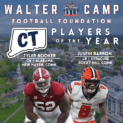 Linebacker Justin Barron (Syracuse) and offensive tackle Tyler Booker (Alabama) – have been selected as Walter Camp’s 2024 Connecticut Players of the Year.