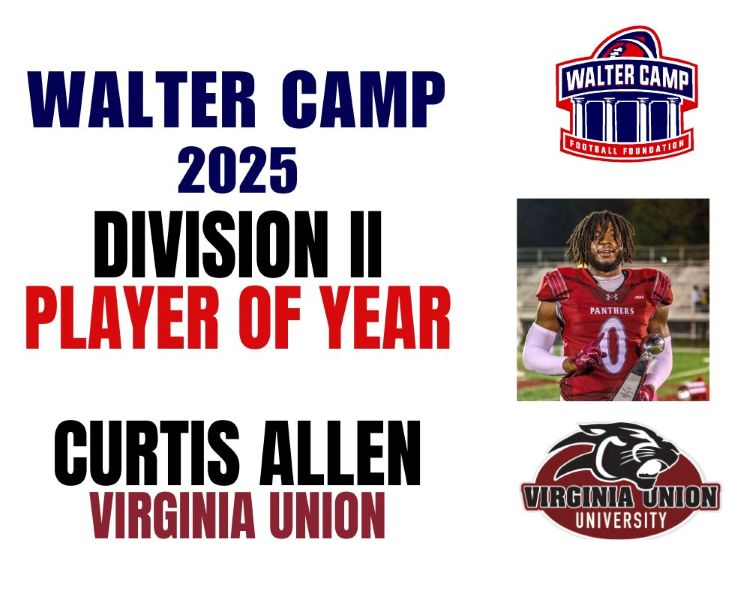 Virginia Union University senior running back Curtis Allen has been named the 2025 Walter Camp Division II Player of the Year, capping off a historic season.