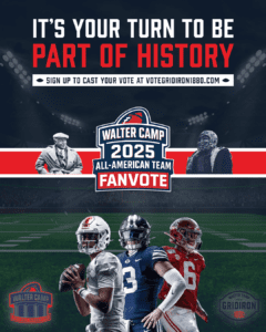 Thompson added, “By integrating the Walter Camp Impact Ranking technology into the FanVote, it transforms fan participation into actionable insight. The goal is to give every player, alum, and fan the ability to see real data on player performance ranking through the lens of a coach, scout, or general manager.”